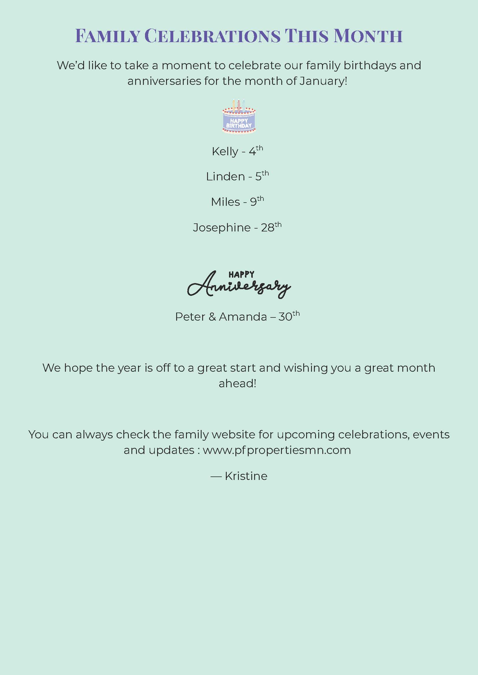 January Birthdays & Anniversaries